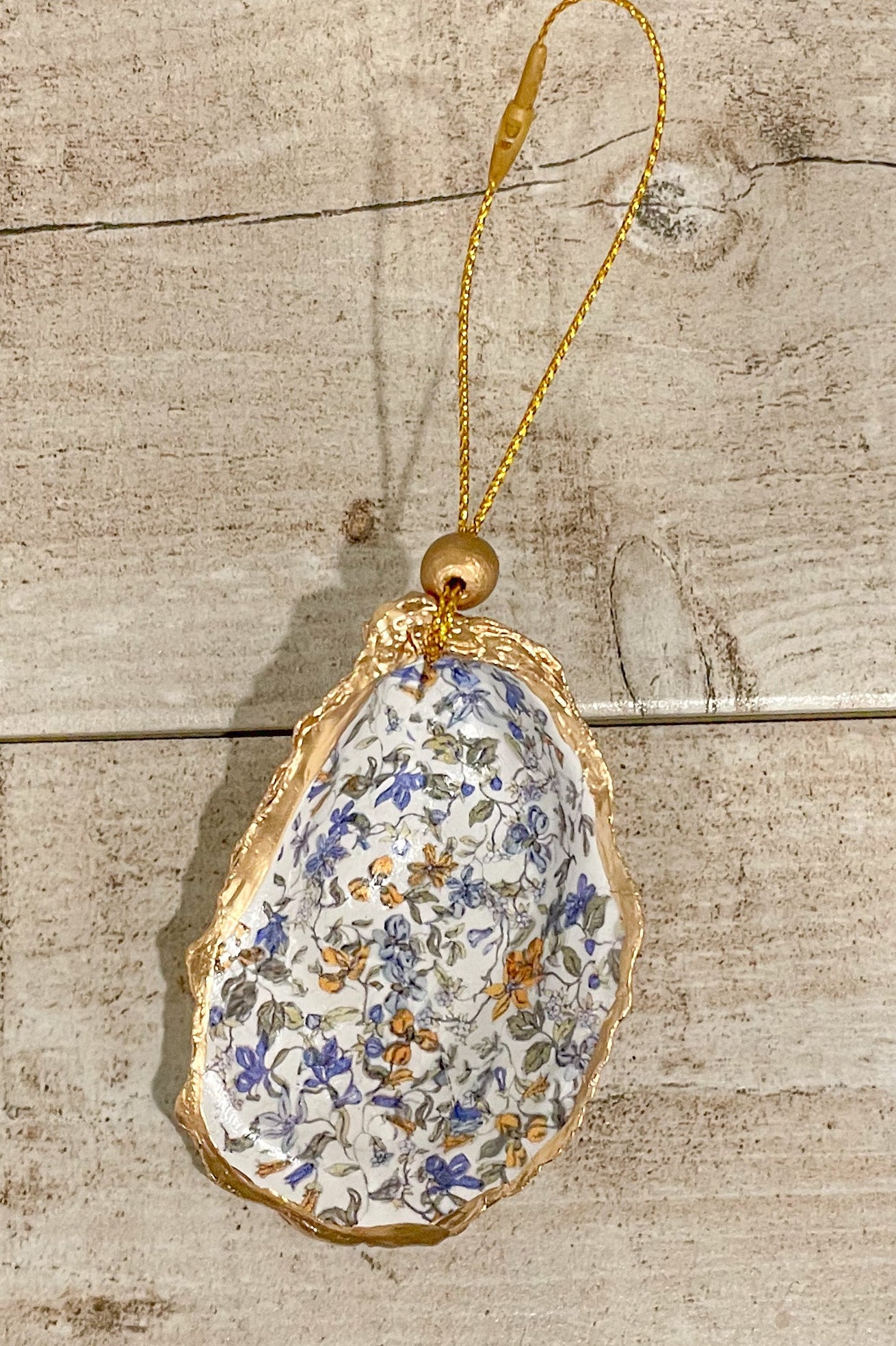 Each locally sourced shell is embellished by hand and strung with gold ornament cord and a single gold bead. Every shell is unique and vary in size, but approximate size of the ornament shells are 1.5" - 2.5"